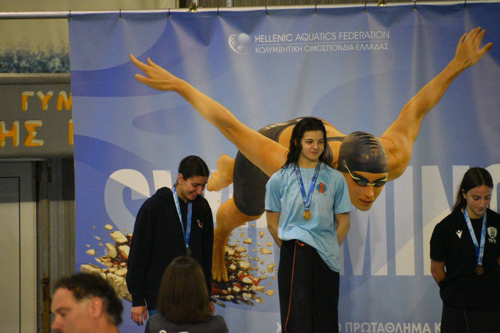 Κουρτέση Τερέζα: Η πρωταθλήτρια μας και η αθλήτρια που εμπνέει και όλους τους υπόλοιπους κολυμβητές κατέκτησε 3 χρυσά, στα 50 -100 και 200μ. ελεύθερο. Στο αγώνισμα του 100 ελεύθερο μαζί με το χρυσό σημείωσε νέο ρεκόρ αγώνων Β. Ελλάδος με χρόνο 57:89 καταρρίπτοντας προηγούμενο που κρατούσε από το 2003 και το κατείχε η Δημοσχάκη Ζωή του Άρη Θεσσαλονίκης με χρόνο 58:42.