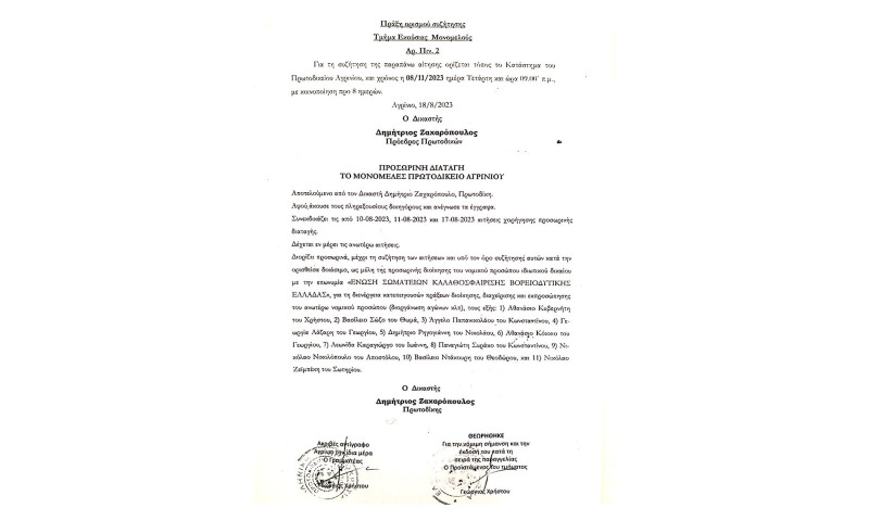 Έχουμε πλέον προσωρινή διοίκηση στην ΕΣΚΑΒΔΕ με απόφαση του μονομελούς Πρωτοδικείου Αγρινίου, για να διαχειριστεί τις αναγκαίες διοικητικές πράξεις ώστε να λειτουργήσει η Ένωση.