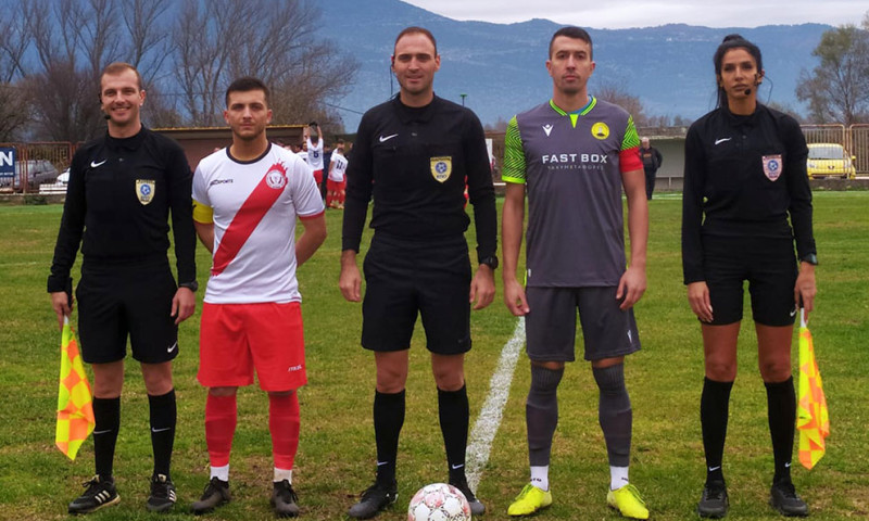 Οι Κερκυραίοι διαιτητές, με τους αρχηγούς των ομάδων, πριν την έναρξη του ματς Θύελλα Κατσικάς – ΓΑΣ Σβορώνος ΦΩΤΟ@ΓΑΣ ΣΒΟΡΩΝΟΣ