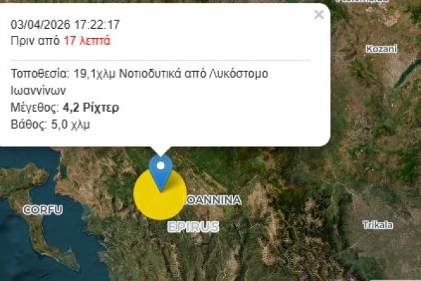Νέα σεισμική δόνηση 4,2 Ρίχτερ στο Λυκόστομο Ιωαννίνων