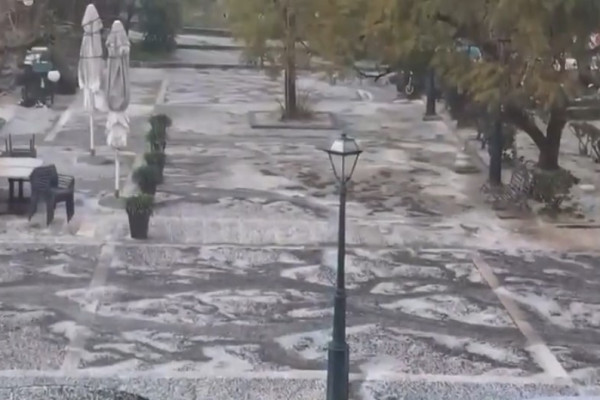 Το «έστρωσε» με χαλάζι στο κέντρο της Κέρκυρας (βίντεο)