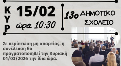 Κυριακή 15 Φεβρουαρίου 2026 και ώρα 10:30 στον χώρο του 13ου, Δημοτικού Σχολείου
