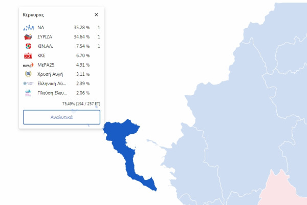 Αποτελέσματα στην εκλογική περιφέρεια Κέρκυρας (8:35 μμ)