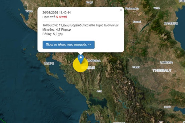 Ισχυρή σεισμική δραστηριότητα στα Ιωάννινα: δονήσεις των 4,6 και 4,7 Ρίχτερ